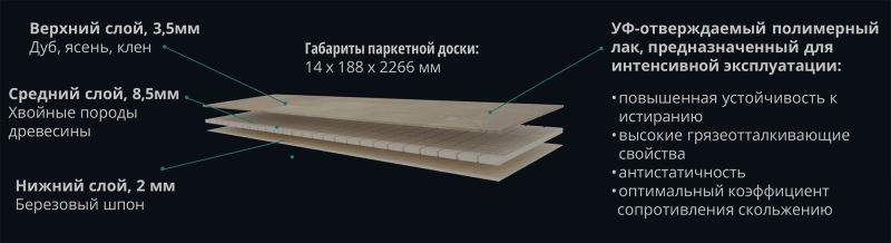 - Паркетная доска, 14 мм