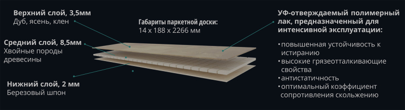 - Несущий слой - специальная паркетная доска для применения на объектах спорта с заводским специальным лаком
